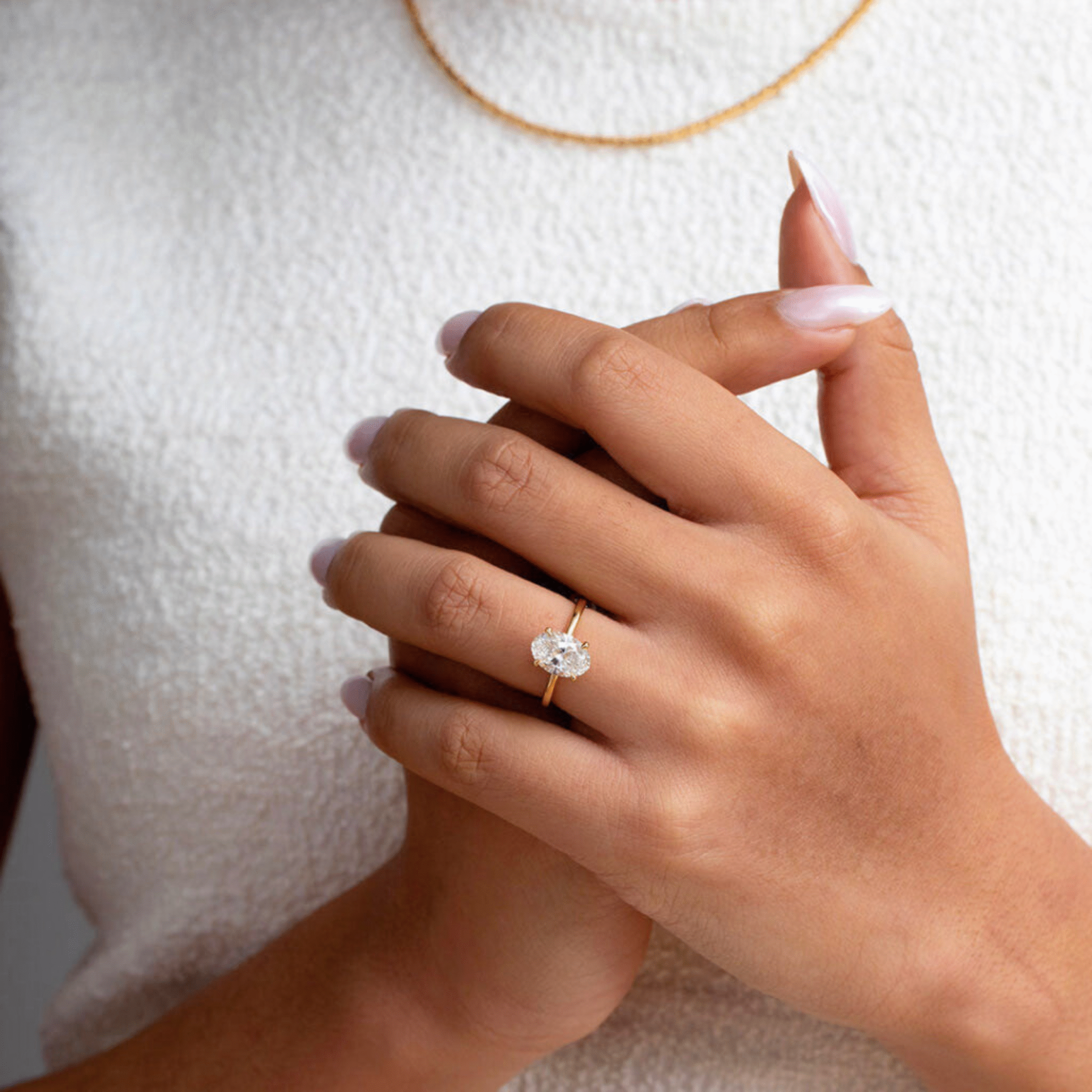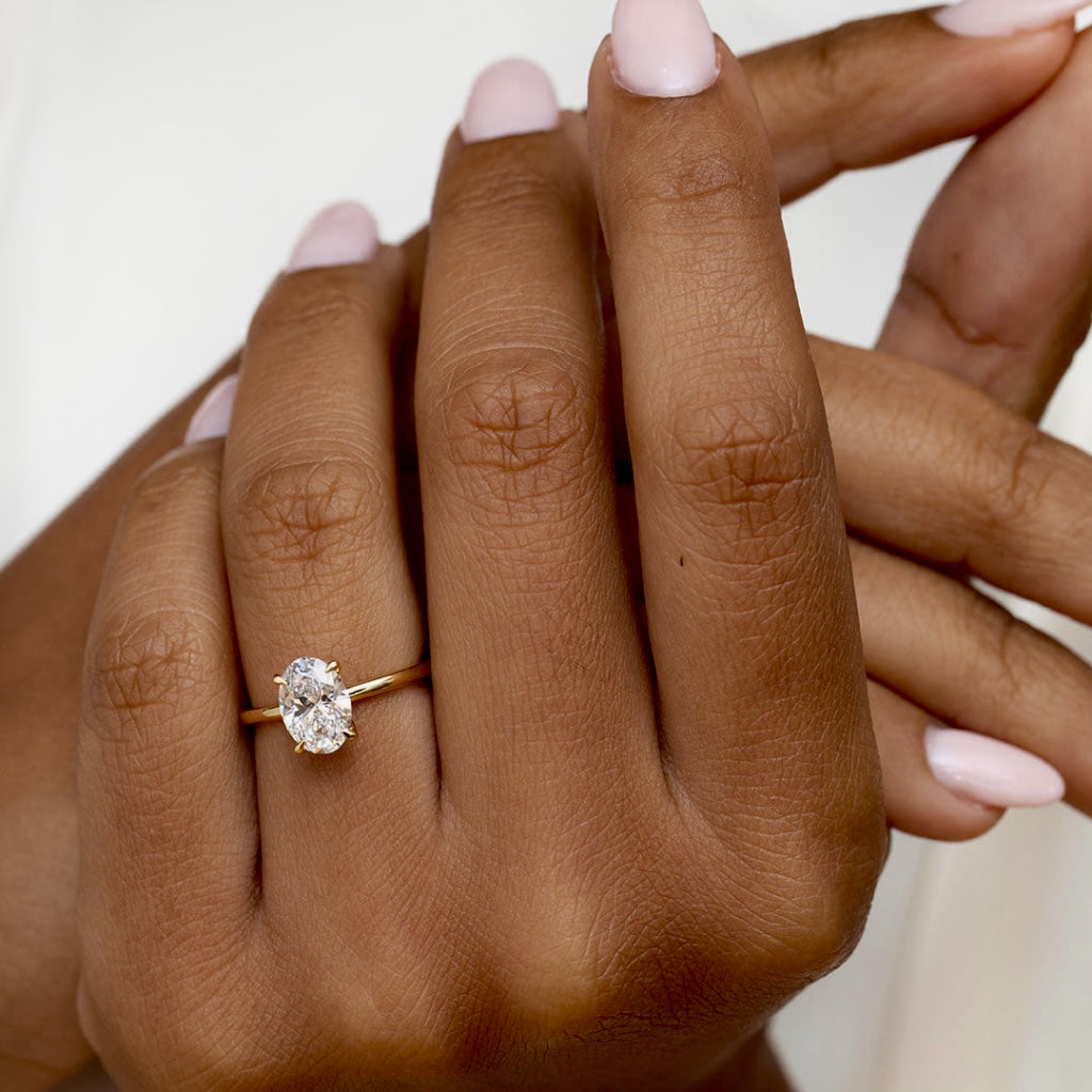 The BDC Avora Oval Moissanite Engagement Ring embodies effortless elegance and refinement. Featuring a brilliant 1.50ct oval-cut Moissanite diamond, set gracefully on a sleek solid 18ct yellow gold band, this design combines timeless beauty with modern sophistication. The oval cut enhances brilliance, offering a dazzling sparkle from every angle. Perfect for those who desire a dainty yet striking symbol of love.